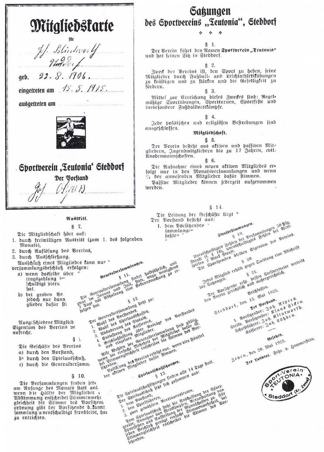 Seit 100 Jahren gibt es jetzt den Sportverein Teutonia Steddorf. Die Gründung erfolgte im Jahr 1925 durch eine Laune des Schicksals. Das berichteten zumindest die Gründer Johann Klintworth, Johann Löhden, Hinrich Klindworth, Johannes Bargfrede und Hanns Albers. Begeistert vom Zuschauen bei einem Faustballspiel in Zeven beschloss man auf dem Rückweg das selbst einmal zu probieren. Nach den ersten Versuchen stellte man jedoch fest, dass das Schlagen des Balls mit der Faust doch etwas lästig war, zu spielen mit dem Fuß wesentlich interessanter.